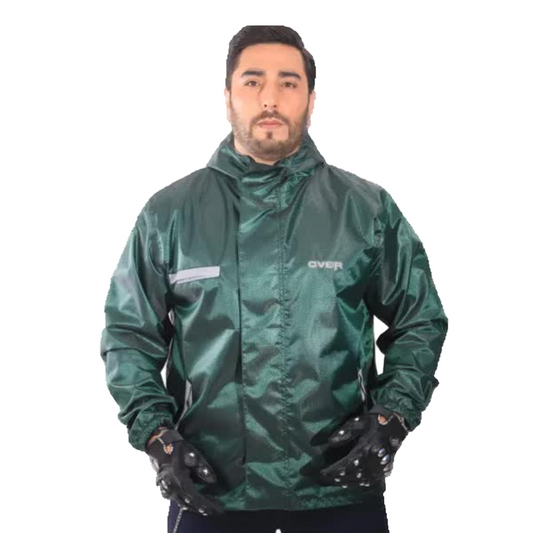 Chaqueta Impermeable Doble Faz Reflectiva Over 100% Verde
